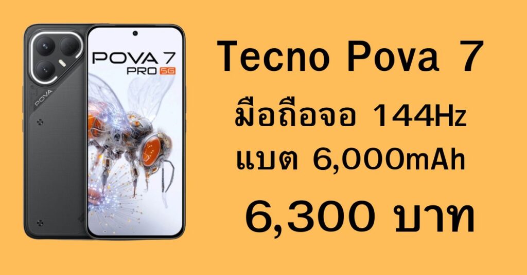 | Pova 7 | 8GB/128GB | ₹14,999 (~$175) | 6,300 บาท |